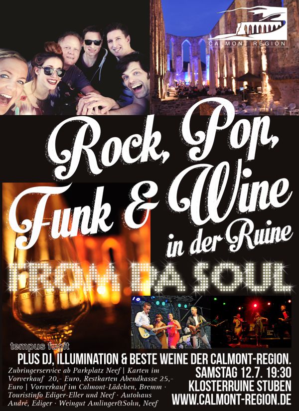 Zubringerservice ab Parkplatz Neef | Karten im Vorverkauf 20,- Euro, Restkarten Abendkasse 25,- Euro | Vorverkauf im Calmont-Lädchen, Bremm ∙ Touristinfo Ediger-Eller und Neef ∙ Autohaus André, Ediger ∙ Weingut Amlinger&Sohn, Neef